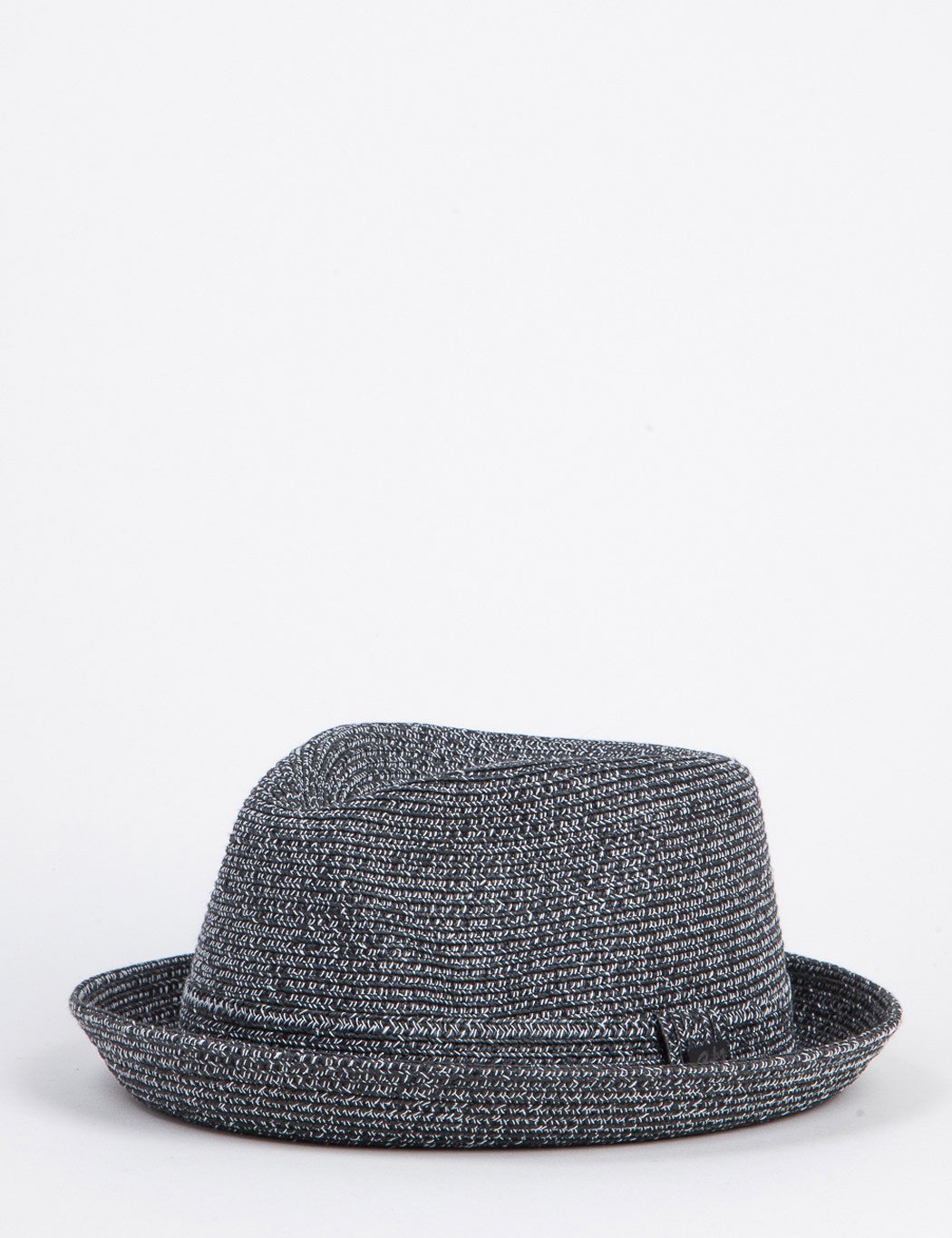 The Bailey Billy Trilby Hat in Static from the Bailey hats core collection. The Billy hat is an unlined braided trilby made from paper braid blend. It features a teardrop crown, woodmark metal logo, tonal headband and woven polyester sweatband.