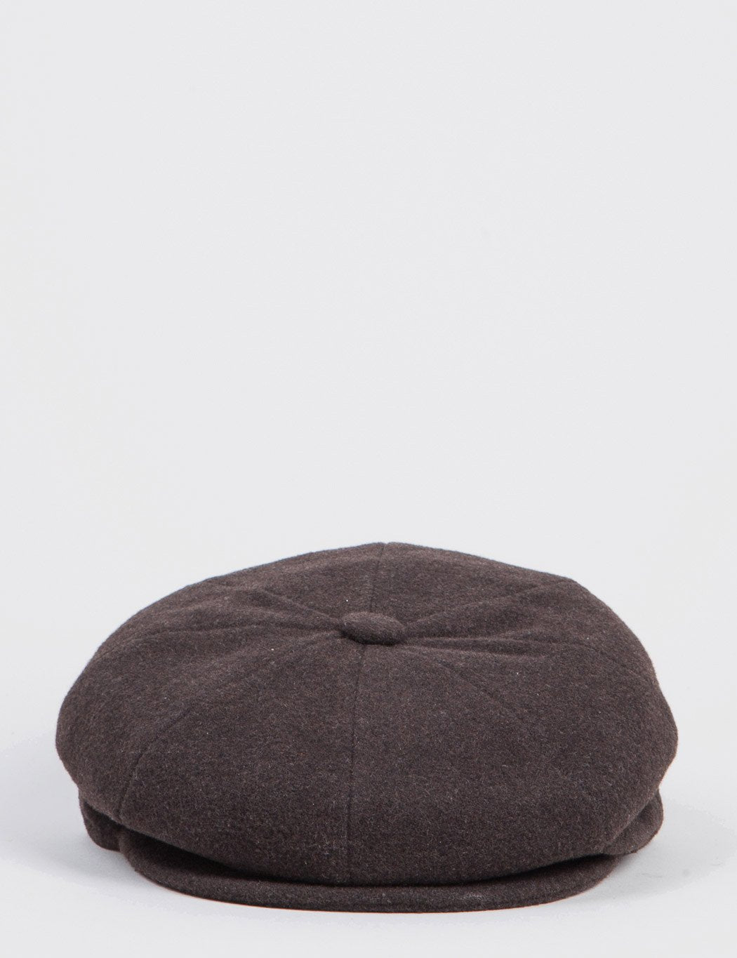 The Galvin newsboy hat in brown from Bailey Galvin hats core collection. This Bailey Galvin flat cap is a fully lined newsboy cap crafted in Italy but cut from Bailey's classic 8/4 style cap block with eight solid, soft wool panels and a double snap bill visor.
