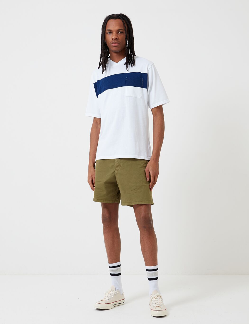 The Cove Twill Shorts from Barbour's white label collection, made for the Japanese market. Cut in a loose fir in a washed cotton twill gives them a vintage appearance. Detailing includes an elasticated waist band, welted pockets and zipper fly.