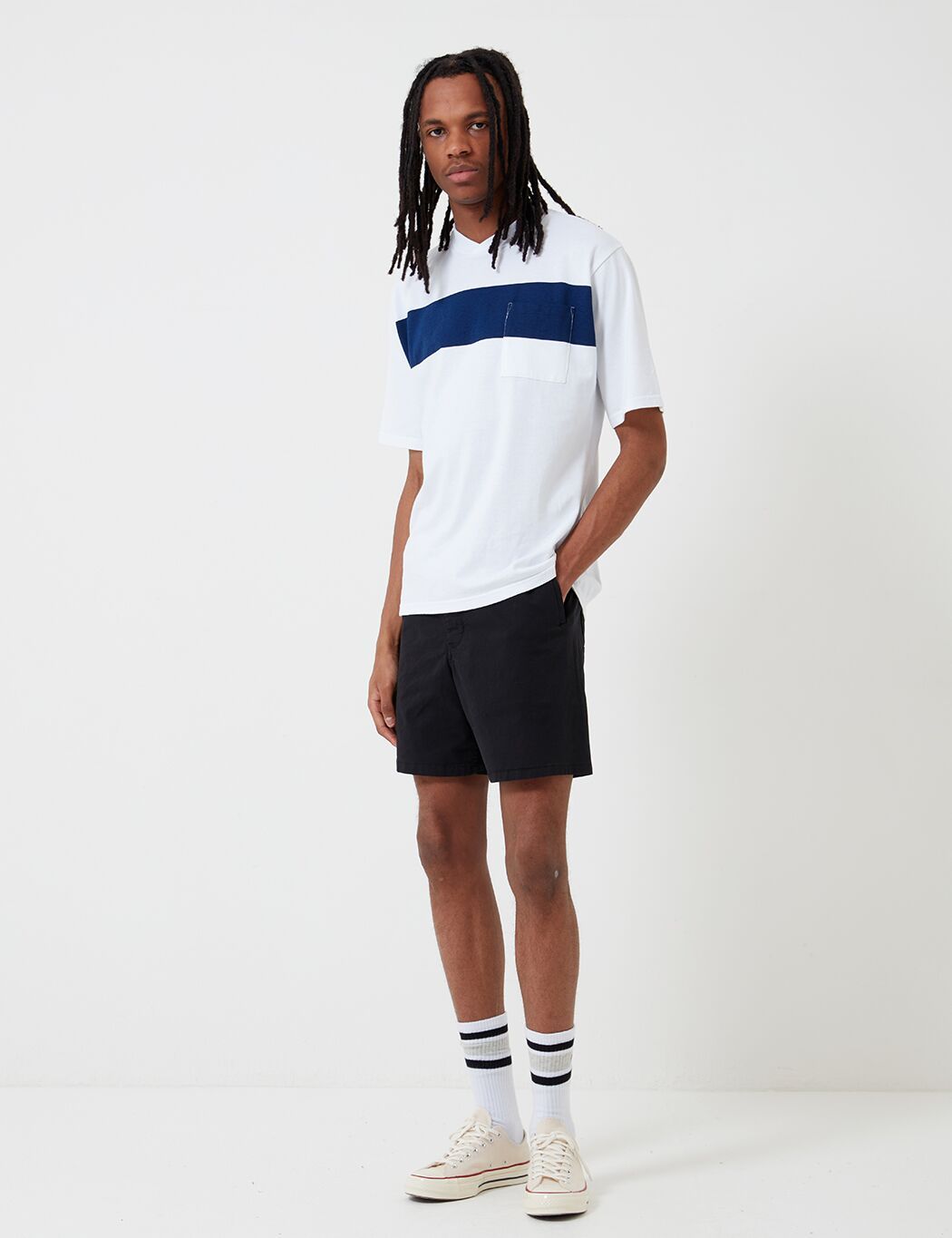 The Barbour Cove Twill Shorts in navy blue from the Barbour White Label Spring/Summer 2020 collection.