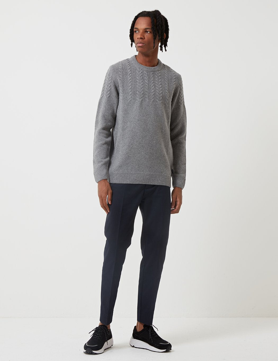 The Barbour Crastill Cable knit jumper in Grey Marl from the Barbour knitwear Autumn/Winter 2019 core essentials collection. Barbour make solid knitted made to last and stand up against the elements.